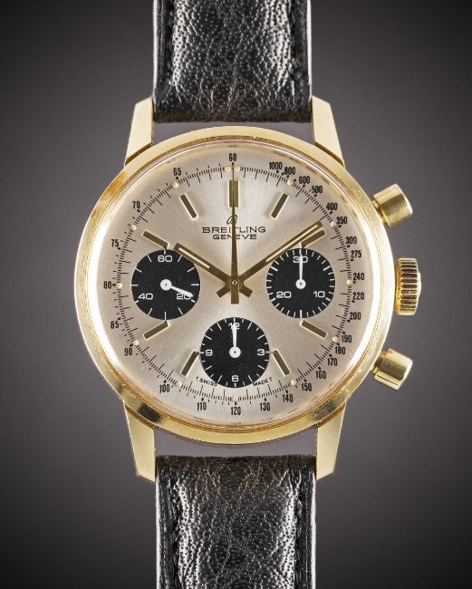 A GENTLEMAN'S GOLD PLATED BREITLING "LONG PLAYING" CHRONOGRAPH WRIST WATCHCIRCA 1973, REF. 815 WITH "PANDA" DIAL Movement: 17J, manual wind, Valjoux cal. 7736, signed Breitling Watch Ltd. Case: Diameter approx. 38mm, steel snap back, signed Breitling, dust cover, Breitling crown.Strap: Leather.CONDITION REPORTDial: Original dial in excellent condition.Movement: Running & functioning at present, timekeeping and accuracy cannot be guaranteed.Case: In excellent condition, some surface tarnishing to case.Strap/Bracelet: In excellent condition.