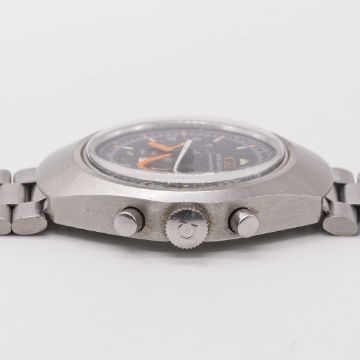 A GENTLEMAN'S STAINLESS STEEL OMEGA SEAMASTER "FLAT JEDI" CHRONOGRAPH BRACELET WATCHCIRCA 1972, REF. 145.024 WITH GREY DIALMovement: 17J, manual wind, cal. 861, signed Omega, numbered 31,xxx,xxx. Case: Width approx. 40mm, screw back, Seamaster emblem engraved on case back, signed Omega Watch Co, Omega crown.Bracelet: Original Omega bracelet, numbered (11) 1162/172.CONDITION REPORTDial: Original dial in excellent condition, showing some small signs of age.Movement: Running & functioning at present, timekeeping and accuracy cannot be guaranteed.Case: In excellent condition, with some light scratches due to general use.Strap/Bracelet: In very good condition, with some light scratches due to general use.