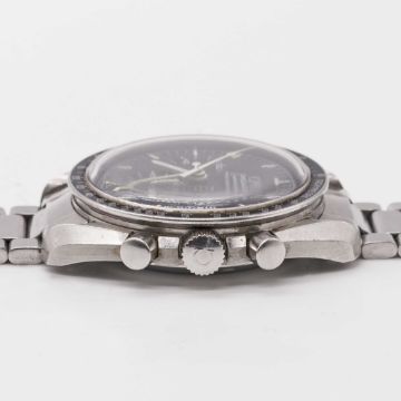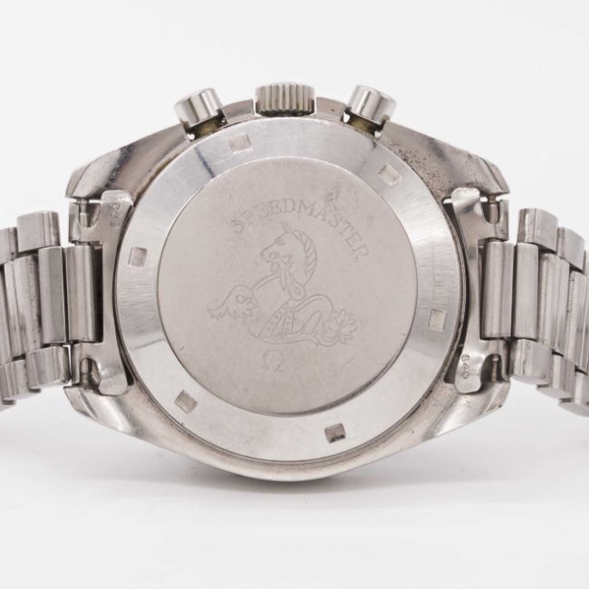 A RARE GENTLEMAN'S STAINLESS STEEL OMEGA SPEEDMASTER PROFESSIONAL CHRONOGRAPH BRACELET WATCHCIRCA 1971, REF. 145.022-69 ST WITH "220 MISPRINT" BEZEL & ORIGINAL 1175 BRACELETMovement: 17J, manual wind, cal. 861, signed Omega, numbered 30,xxx,xxx.Case: Diameter approx. 42mm, screw back, Speedmaster emblem on case back, signed Omega Watch Co, "220 misprint" tachymetre bezel, dust cover, Omega crown.Bracelet: Original Omega Speedmaster "heavy" flat-link bracelet, numbered 1175/640, dated 1-71.CONDITION REPORTDial: Original dial in excellent condition.Movement: Running & functioning at present, timekeeping and accuracy cannot be guaranteed.Case: In very good condition, with some scratches due to general use.Strap/Bracelet: In good condition, with light scratches & some wear to the links due to general use.