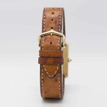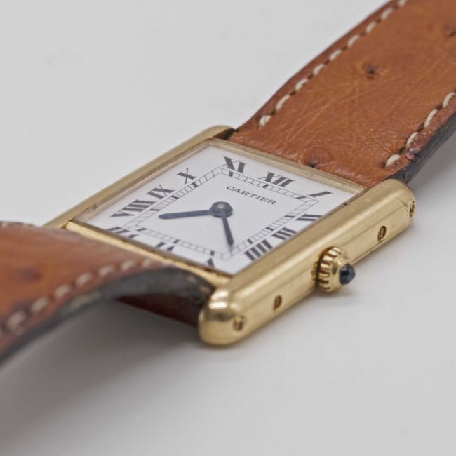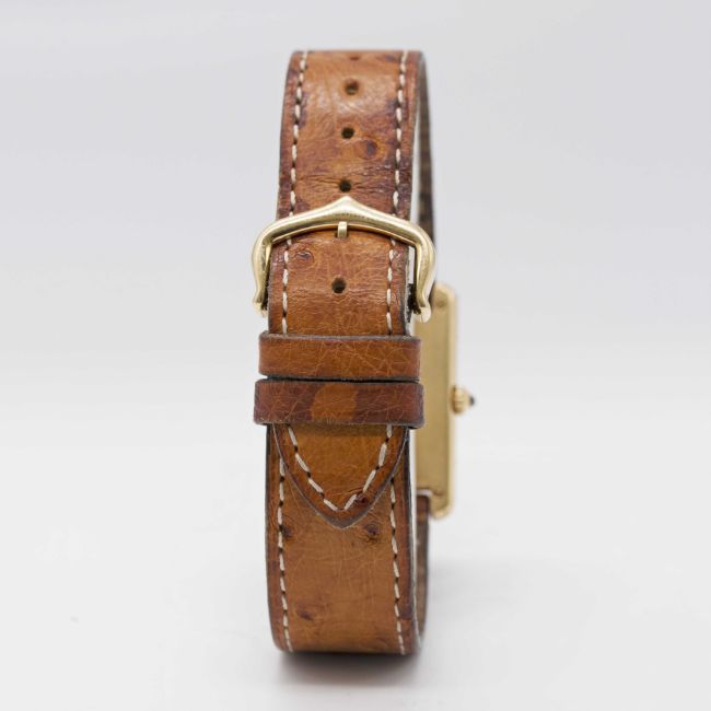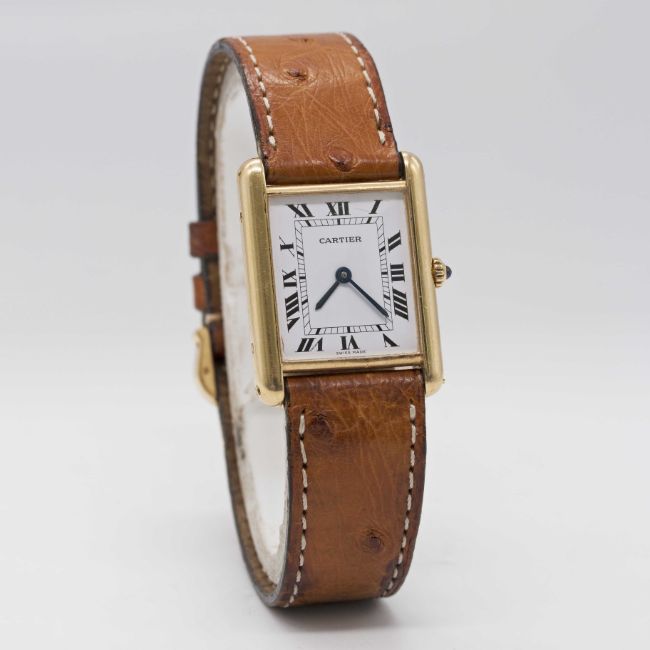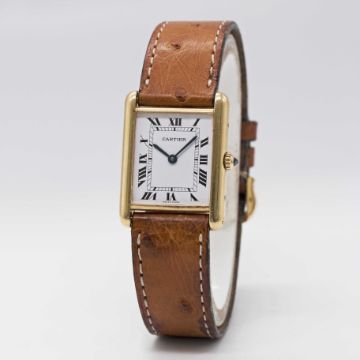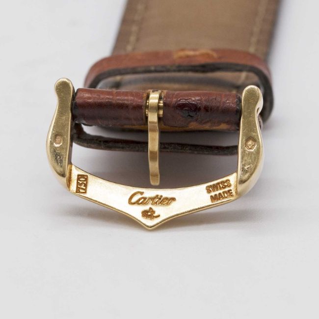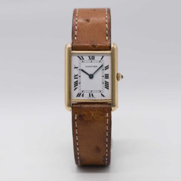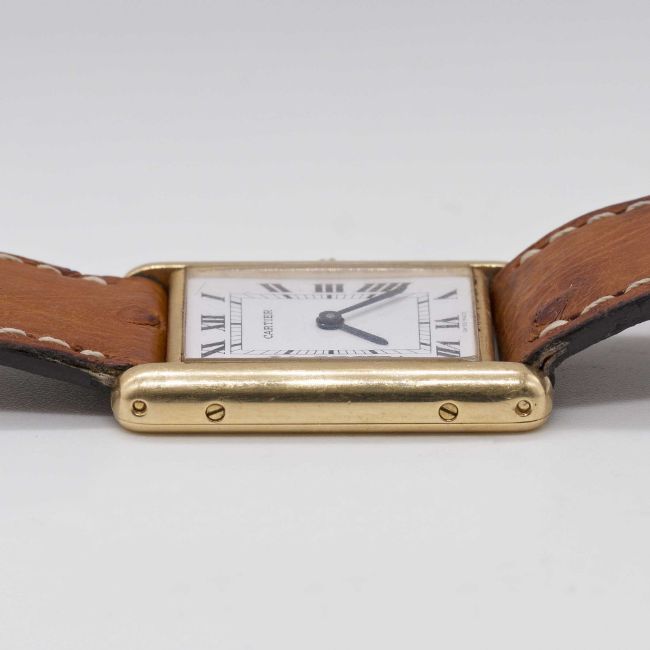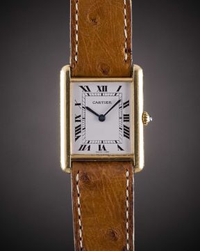 A GENTLEMAN'S SIZE 18K SOLID GOLD CARTIER TANK WRIST WATCHCIRCA 1990sMovement: Quartz, signed Cartier.Case: Approx. 31mm by 23.5mm, signed Cartier Paris, numbered, 18k hallmarks, sapphire crown.Strap: Cartier leather strap & 18k solid gold pin buckle.CONDITION REPORTDial: Original dial in excellent condition.Movement: Running & functioning at present, timekeeping and accuracy cannot be guaranteed.Case: In very good condition, with some light scratches due to general use.Strap/Bracelet: In fair condition, pin buckle in very good condition.