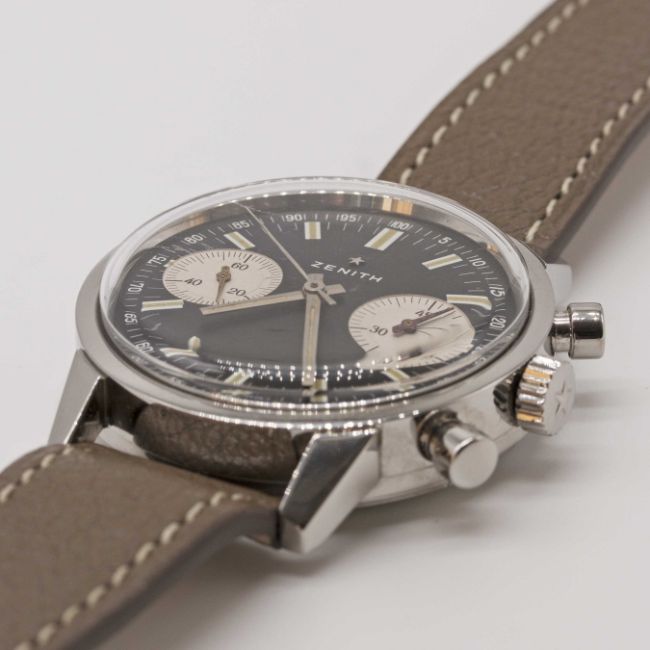 A GENTLEMAN'S STAINLESS STEEL ZENITH CHRONOGRAPH WRIST WATCHCIRCA 1970, REF. A278 WITH "REVERSE PANDA" DIALMovement: Manual wind, cal. 146 DP, signed Zenith.Case: Diameter approx. 37mm, screw back, emblem embossed on case back, signed Zenith, numbered, Zenith crown. Strap: Leather.CONDITION REPORTDial: Original dial in excellent condition.Movement: Running & functioning at present, timekeeping and accuracy cannot be guaranteed.Case: In excellent condition, with some light scratches due to general use.Strap/Bracelet: In excellent condition.