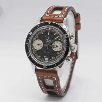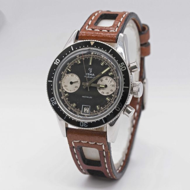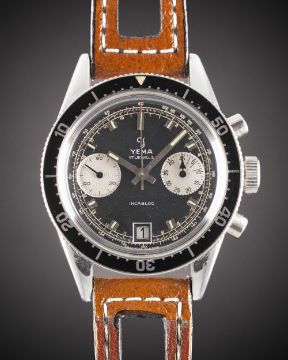 A GENTLEMAN'S STAINLESS STEEL YEMA "DAYTONA" CHRONOGRAPH WRIST WATCHCIRCA 1960s, WITH "REVERSE PANDA" DIALMovement: 17J, manual wind, Valjoux cal. 7734. Case: Diameter approx. 39mm, screw back, Yema crest embossed on case back, ref. 94112, numbered 84x,xxx, 60 minute rotating bezel, original crown.Strap: Perforated leather.CONDITION REPORTDial: Original dial in excellent condition.Movement: Running & functioning at present, timekeeping and accuracy cannot be guaranteed.Case: In excellent condition, with some light scratches due to general use.Strap/Bracelet: In excellent condition.