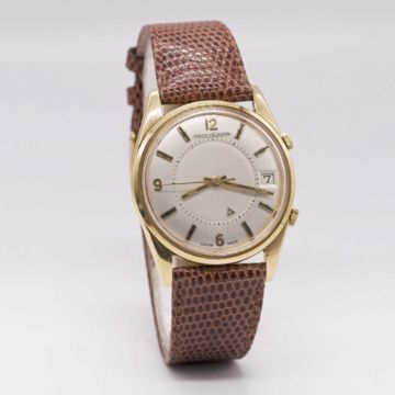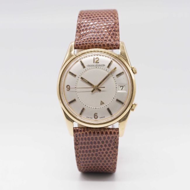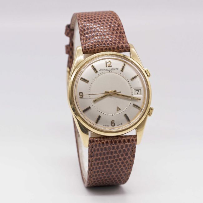 A GENTLEMAN'S 18K SOLID GOLD JAEGER LECOULTRE MEMOVOX ALARM WRIST WATCH