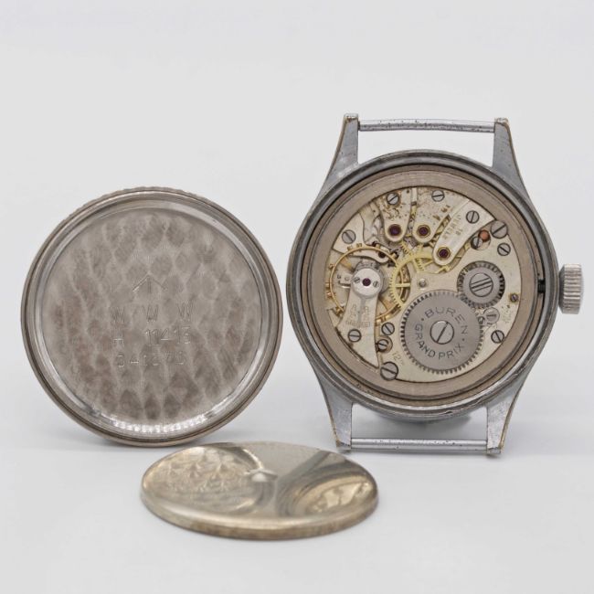 Case: Diameter approx. 36.5mm, fixed bars, nickel plated case with steel screw back, issue markings ^ W.W.W. H 11413 341576, dust cover.