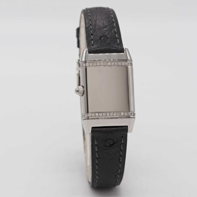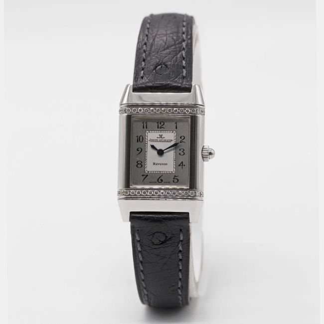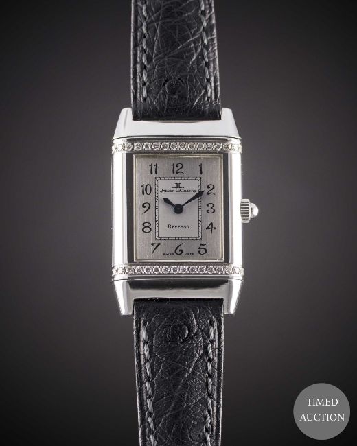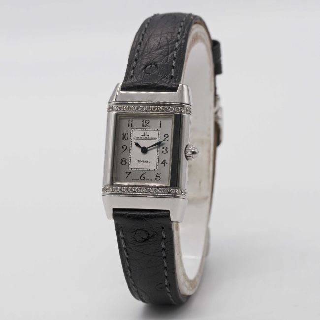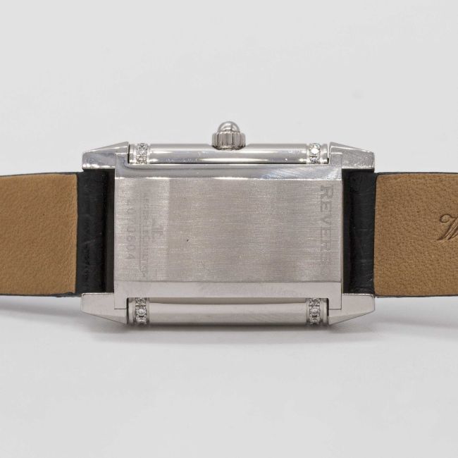 Case: Approx. 33mm by 21mm, original diamond set case, clean reverse side with original set diamonds, signed Jaeger-LeCoultre Reverso, numbered.
