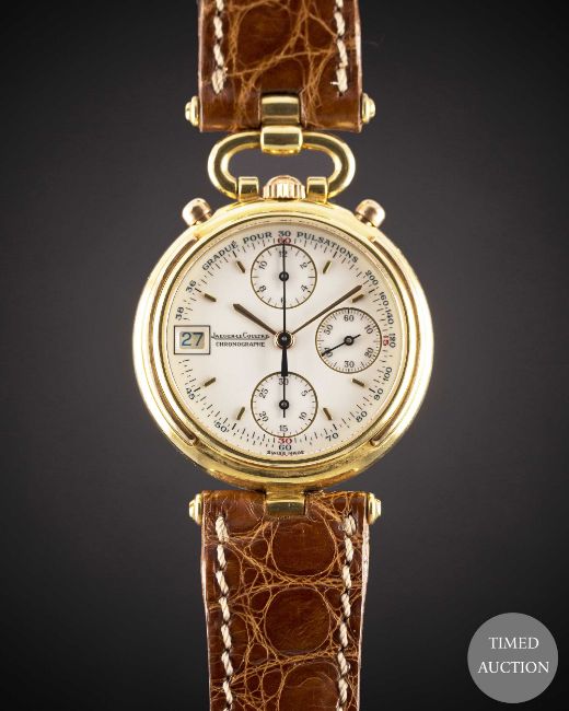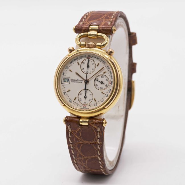 Case: Diameter approx. 30mm, signed Jaeger-LeCoultre, numbered, 18k hallmarks, JLC crown.