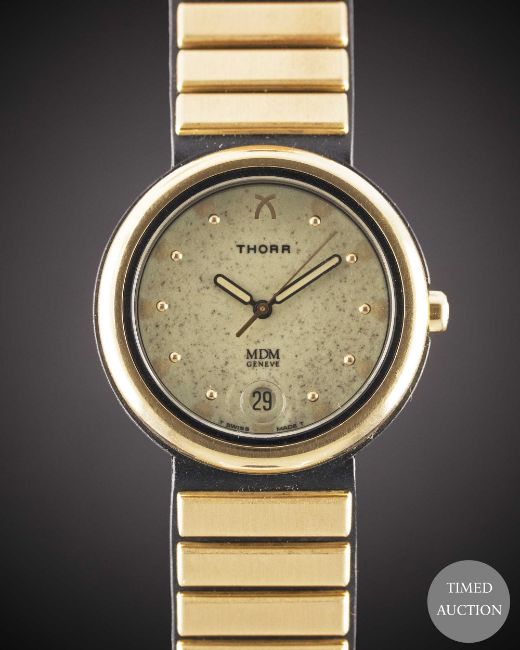 Case: Diameter approx. 34.5mm, signed Thora, numbered, 18k hallmarks, original crown.