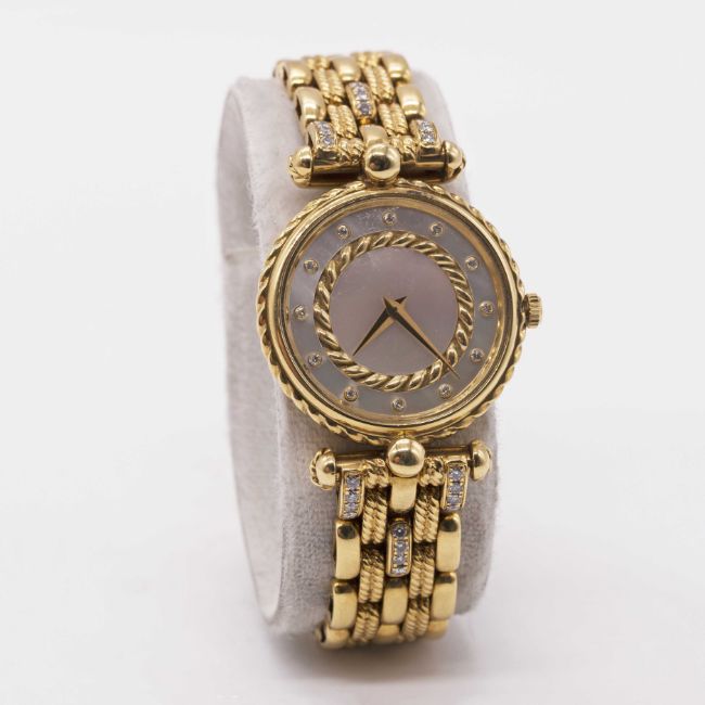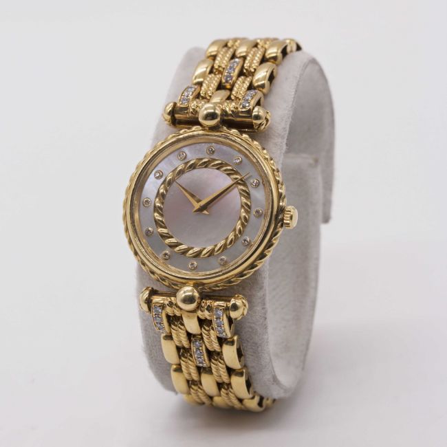 Bracelet: Both with original 18k solid gold bracelets, Delaneau bracelet with six diamond-set links.