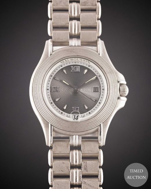 Case: Diameter approx. 34mm, frosted finish, exhibition back, signed Mauboussin, numbered, 18k hallmarks, original crown.