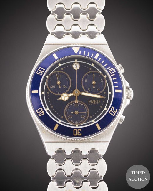 Case: Diameter approx. 38mm, signed Fred La Tigresse, 60 minute rotating bezel, original crown.