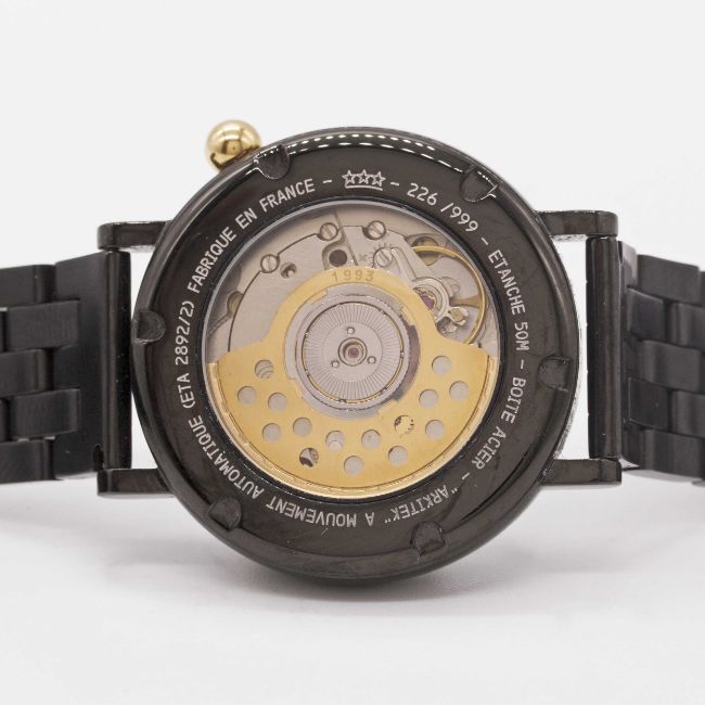 Case: Diameter approx. 35mm, black coated case, exhibition screw back, numbered, original crown.