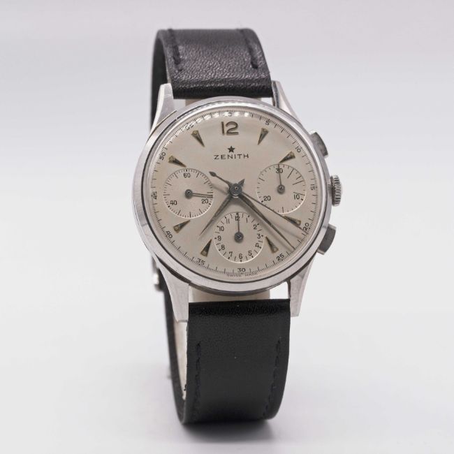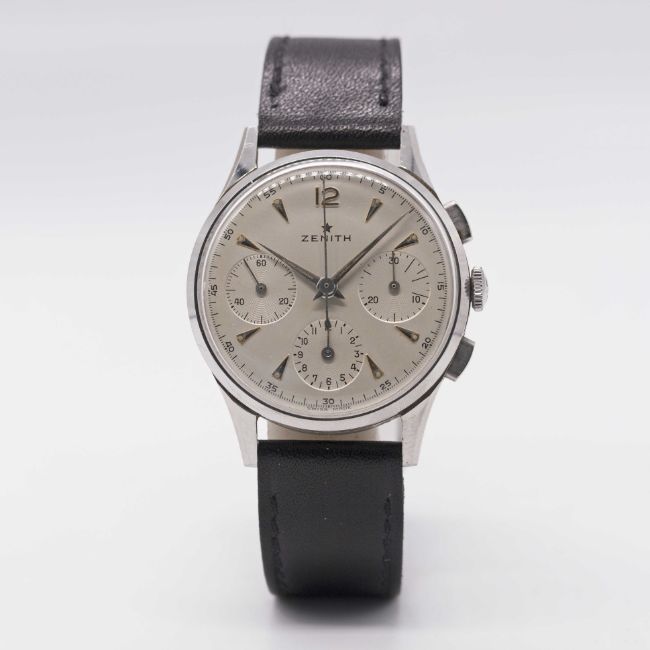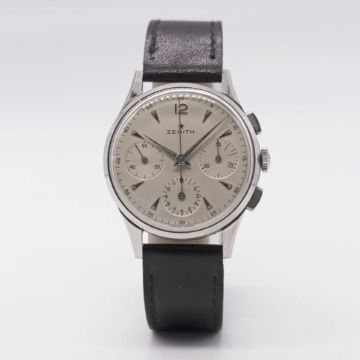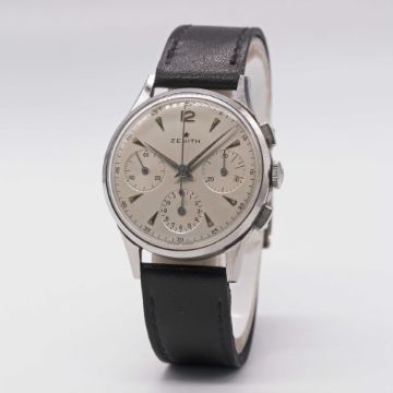 Case: Diameter approx. 35mm, bevelled snap back, signed Zenith, numbered 9,6xx,xxx, Zenith crown.