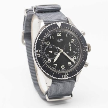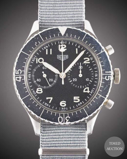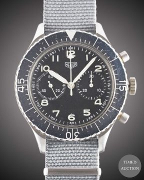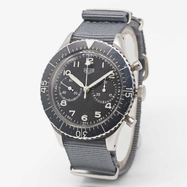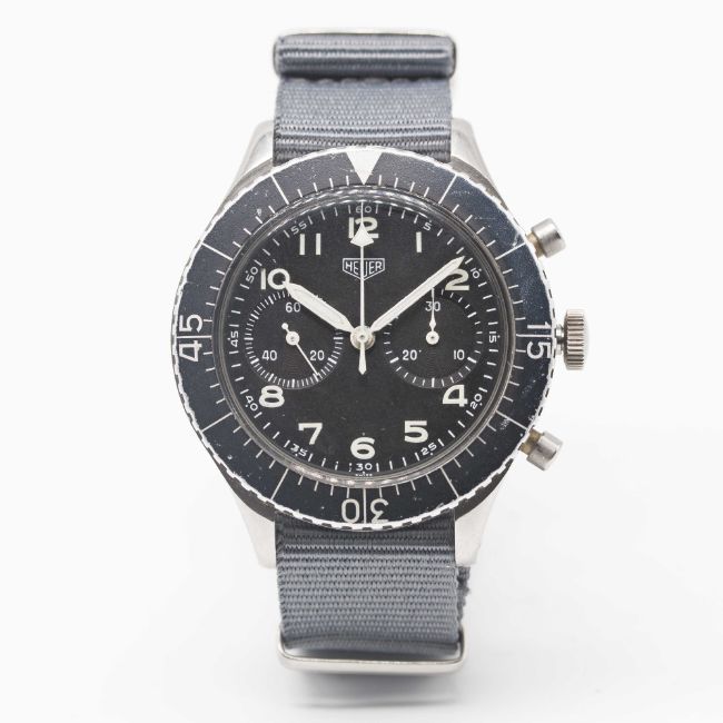 A GENTLEMAN'S STAINLESS STEEL GERMAN MILITARY HEUER BUND FLYBACK CHRONOGRAPH WRIST WATCH