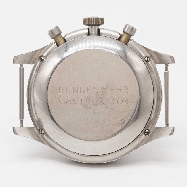 Case: Diameter approx. 43mm, "clamshell" type case with four screws, numbered 75xx, issue markings BUNDESWEHR 6645-12-146-3774, 60 minute rotating bezel.
