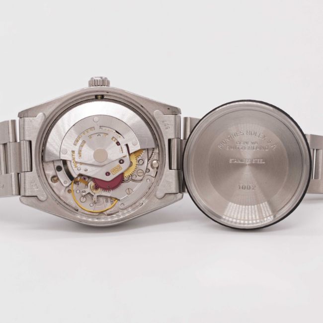 Case: Diameter approx. 34mm, Oyster case, case back ref. 1002, signed Montres Rolex S.A., R serial no., Rolex crown.