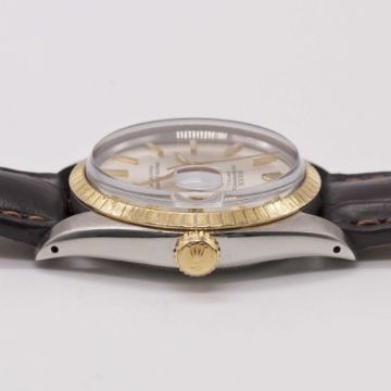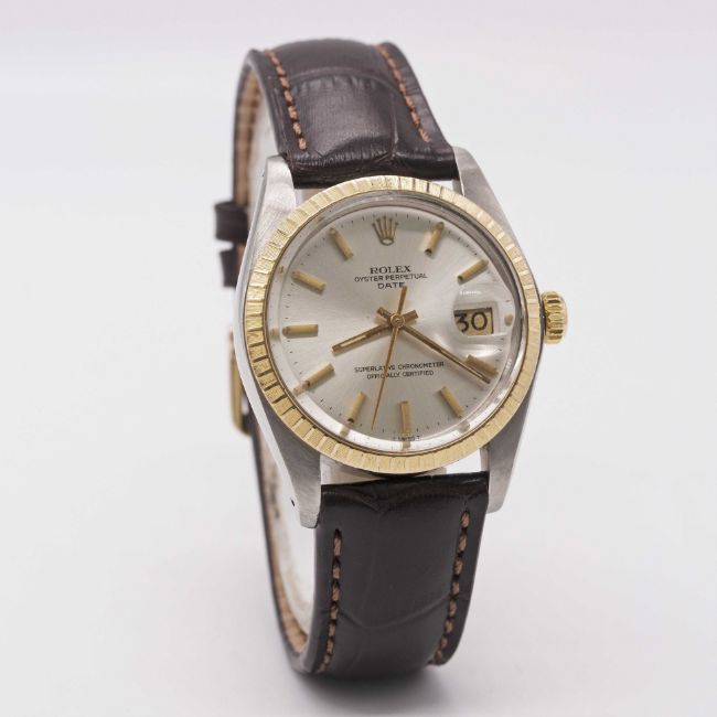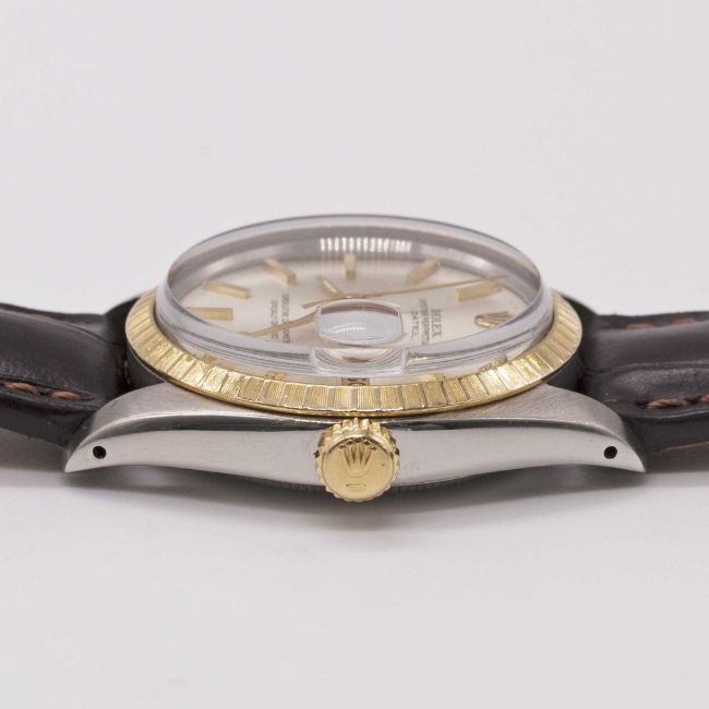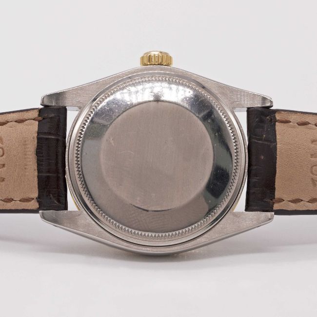 Case: Diameter approx. 35mm, Oyster case, signed Montres Rolex S.A., numbered 6,2xx,xxx, solid gold milled bezel, Rolex crown.