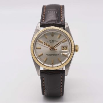 A GENTLEMAN'S STEEL & GOLD ROLEX OYSTER PERPETUAL DATE WRIST WATCH