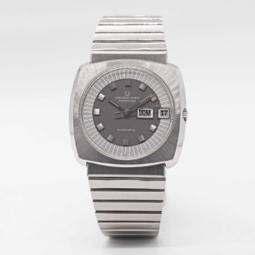 Case: Width approx. 39mm, screw back, signed Universal Geneve, numbered 2,8xx,xxx, Universal crown.