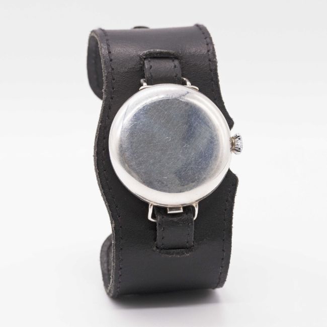 A GENTLEMAN'S SOLID SILVER ROLEX FULL HUNTER OFFICERS TRENCH WRIST WATCHCIRCA 1916, WHITE ENAMEL DIAL WITH LUMINOUS MARKERS & "CATHEDRAL" HANDSMovement: 15J, manual wind, signed Rolex.Case: Diameter approx. 35mm, screw back, signed Rolex W&D, numbered, Brevet patent number, silver hallmarks.Strap: Leather military style.CONDITION REPORTDial: Original dial in very good condition, with a few faint hairline cracks.Movement: Running & functioning at present, timekeeping and accuracy cannot be guaranteed.Case: In very good condition, with some light scratches due to general use.Strap/Bracelet: In very good condition.