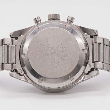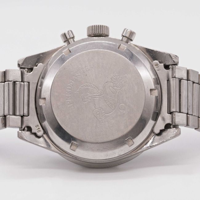A POSSIBLY UNIQUE GENTLEMAN'S STAINLESS STEEL OMEGA SPEEDMASTER CHRONOGRAPH BRACELET WATCHCIRCA 1963, REF. 105.002-62 S.C. FITTED WITH MATT GREY PROTOTYPE DIAL, ACCOMPANIED BY ORIGINAL SINGER BATCH REFERENCE STICKER 20816Movement: 17J, manual wind, cal. 321, signed Omega Watch Co., numbered 19,xxx,xxx. Case: Diameter approx. 39mm, screw back, signed Omega Watch Co, Speedmaster emblem engraved on case back, "DON" tachymetre bezel, dust cover, Omega crown.Bracelet: Omega flat-link bracelet, numbered 7912 with 516 end links, dated 4.62.This watch features a very unusual matt grey dial with black markers that comes from a batch of prototype dials (batch 20816) made by Singer, who were the official Omega dial makers at the time. These dials were most likely rejected dials by Omega as they were never carried over into general production. This particular example is very different to the typical Speedmaster dial and is what makes it so interesting and unique. These dials were discovered many years ago by the vendor solely as dials with their batch reference sticker applied on the back and no dial feet. They are presented today fitted to the correct watches from the period.CONDITION REPORTDial: Original prototype dial in very good condition, showing some small signs of age & light marks to the surface.Movement: Running & functioning at present, timekeeping and accuracy cannot be guaranteed.Case: In good condition, with small scratches due to general use.Strap/Bracelet: In very good condition, with some light scratches due to general use.