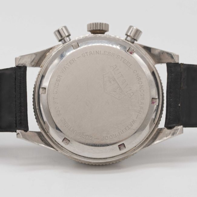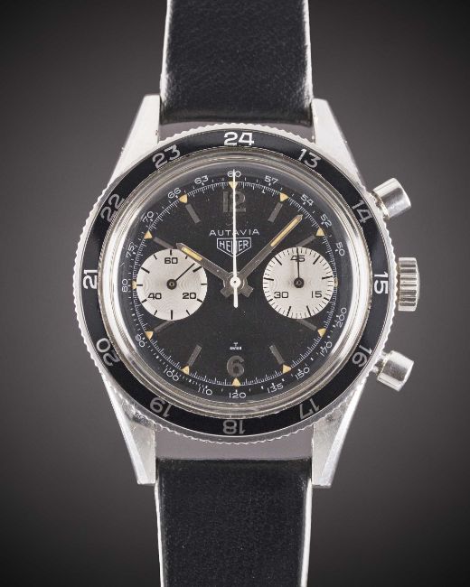 A VERY RARE GENTLEMAN'S STAINLESS STEEL HEUER AUTAVIA CHRONOGRAPH WRIST WATCHCIRCA 1968, REF. 3646 WITH TACHYMETRE DIAL & 24 HOUR BEZELMovement: 17J, manual wind, Valjoux cal. 92, signed Heuer Leonidas SA.Case: Diameter approx. 39mm, screw back, signed Heuer-Leonidas S.A., signed Heuer Autavia on case back, numbered 88,xxx, 24 hour rotating bezel.Strap: Corfam Copa leather strap.CONDITION REPORTDial: Original dial in excellent condition.Movement: Running & functioning at present, timekeeping and accuracy cannot be guaranteed.Case: In excellent condition, with some small scratches due to general use.Strap/Bracelet: In excellent condition.