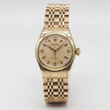 A GENTLEMAN'S SOLID GOLD ROLEX OYSTER SPEEDKING PRECISION BRACELET WATCH
