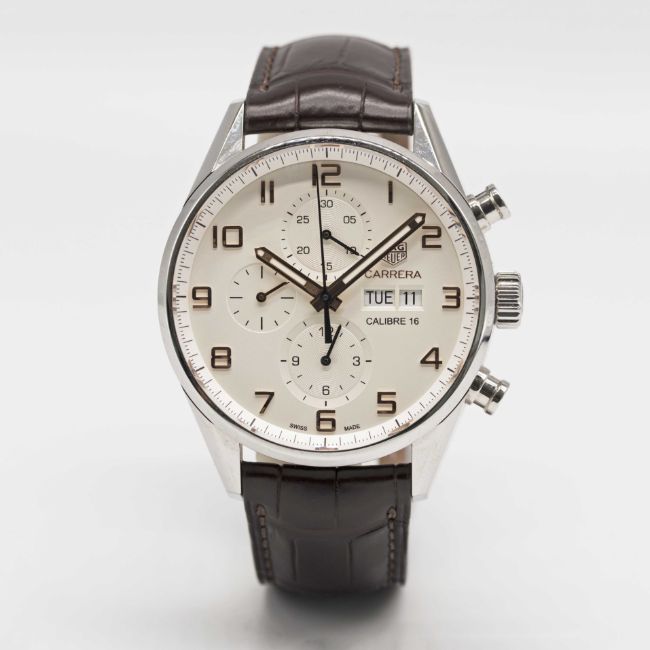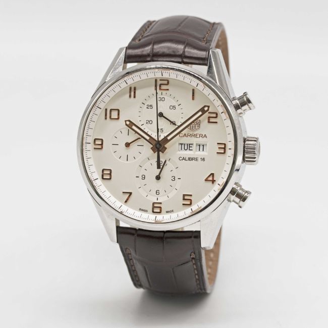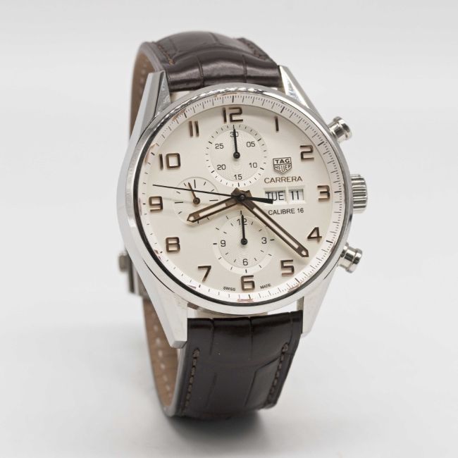 Strap: Brown leather Tag Heuer strap & Tag Heuer folding clasp .
