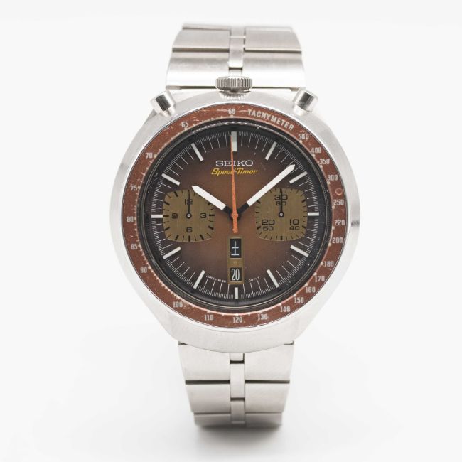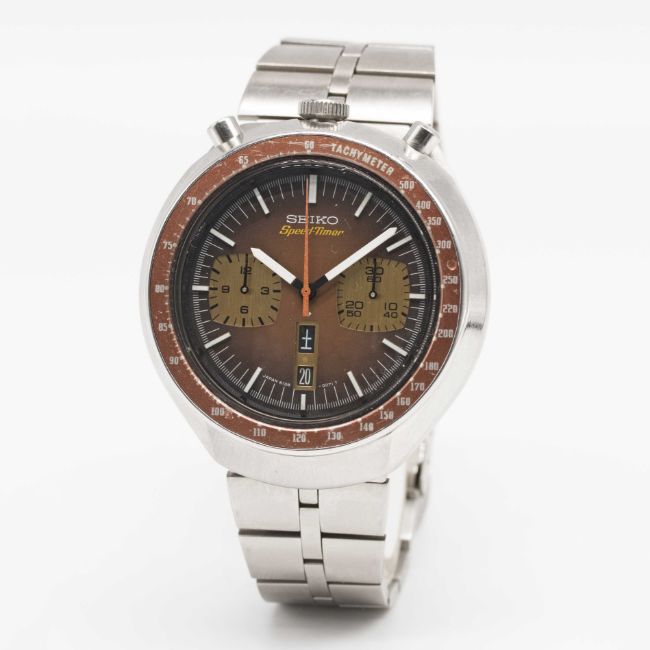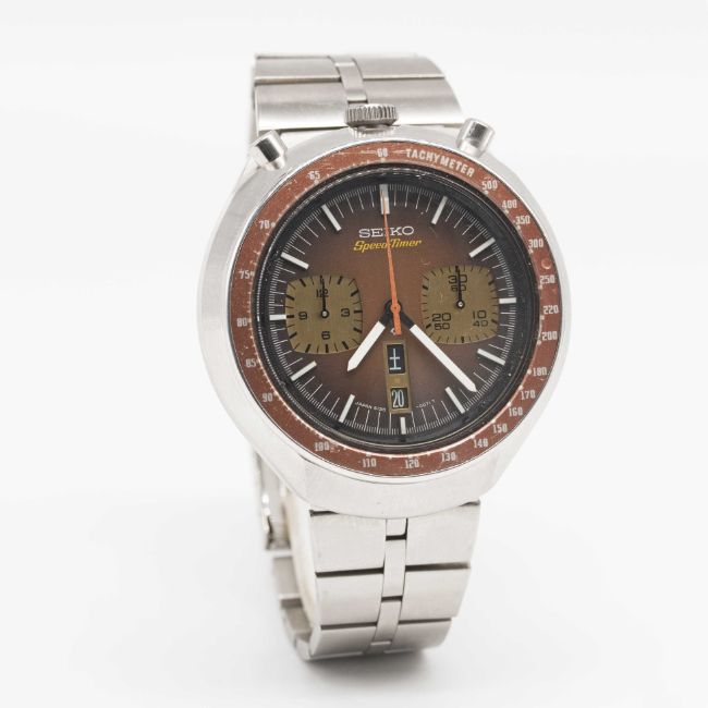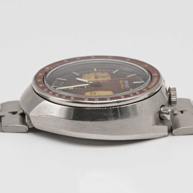 Case: Diameter approx. 44mm, screw back, signed Seiko, numbered 71x,xxx, tachymetre bezel.