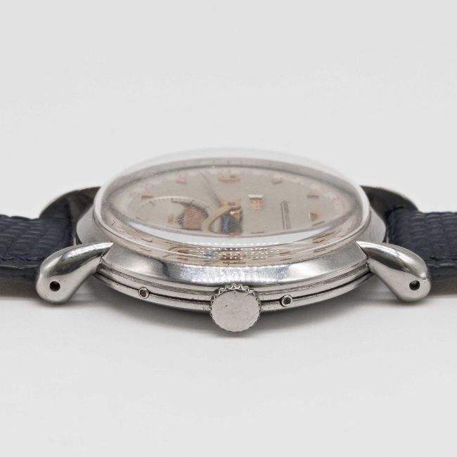 Case: Diameter approx. 36mm, signed LeCoultre Co, numbered 34x,xxx, "teardrop" lugs.