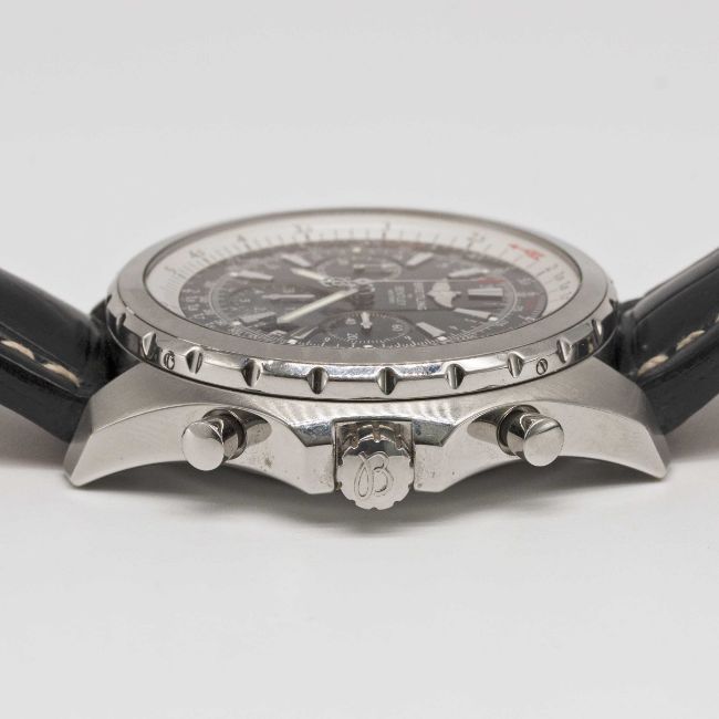 Strap: Black leather Breitling strap & Breitling pin buckle.