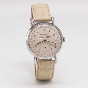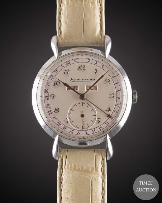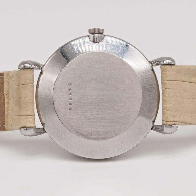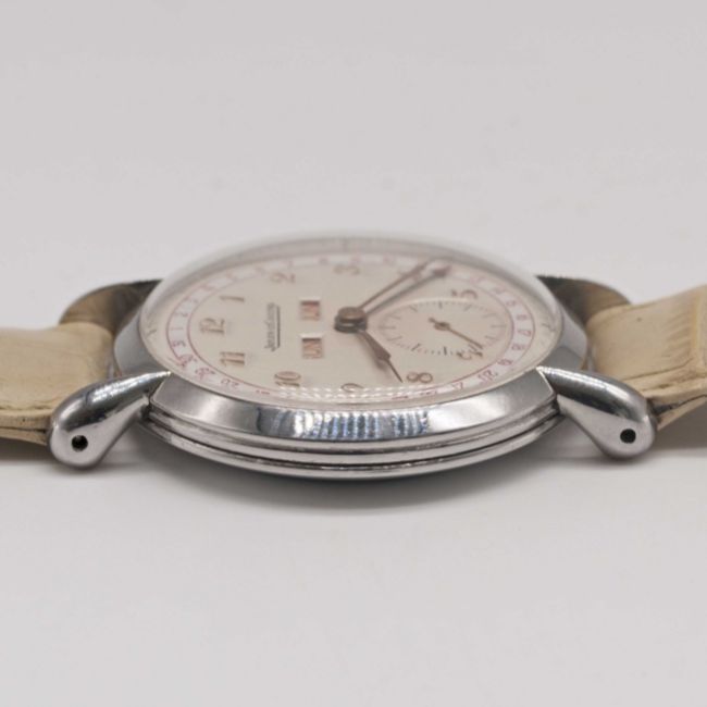 Case: Diameter approx. 36mm, signed LeCoultre Co, numbered 34x,xxx, "teardrop" lugs, JLC crown.