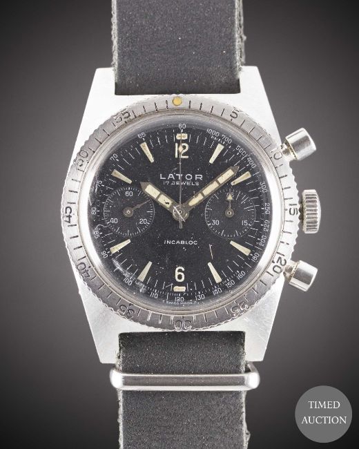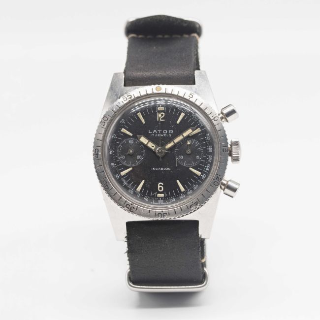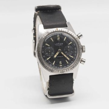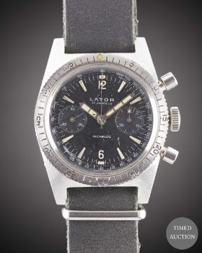 A GENTLEMAN'S STAINLESS STEEL LATOR DIVERS CHRONOGRAPH WRIST WATCH