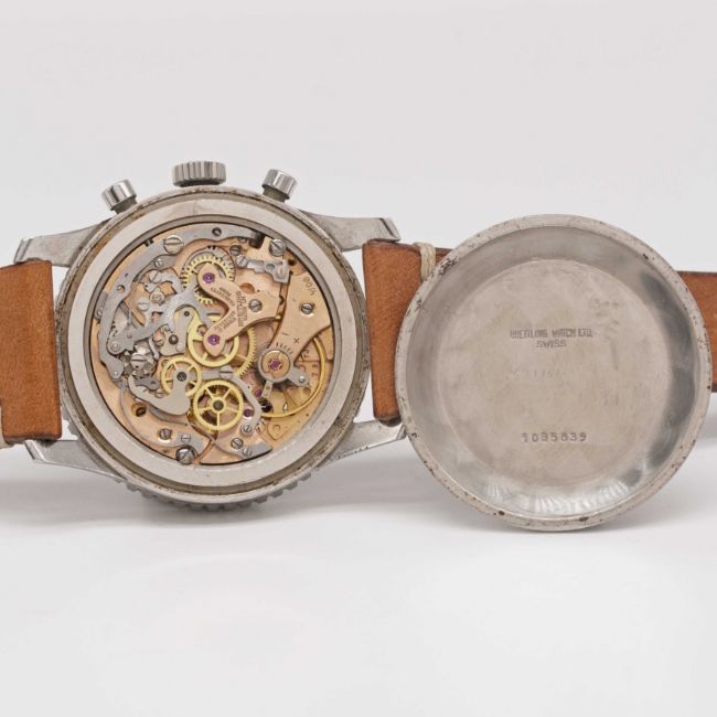 Case: Diameter approx. 41mm, snap back, signed Breitling, numbered 1,0xx,xxx, slide rule bezel, Breitling crown.