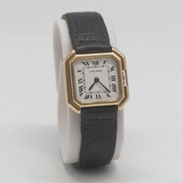 Case: Width approx. 24mm, signed Cartier Paris, 18k Swiss hallmarks, numbered 78x,xxx,xxx, octagonal crown.
