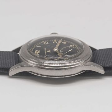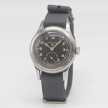 A GENTLEMAN'S STAINLESS STEEL BRITISH MILITARY LONGINES W.W.W. WRIST WATCH