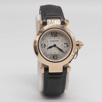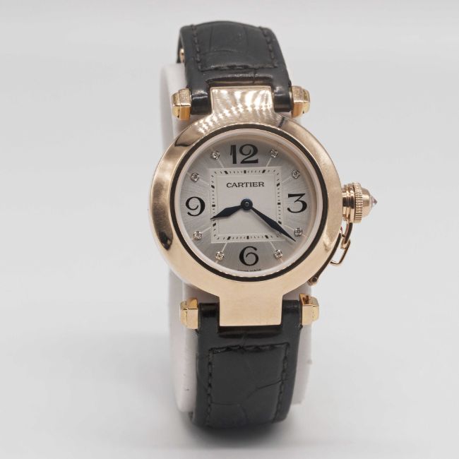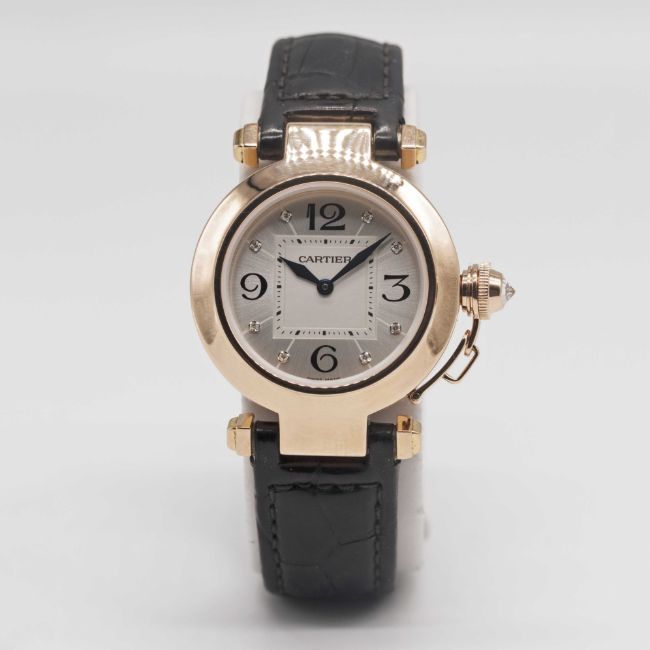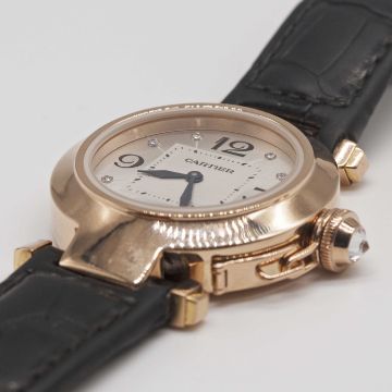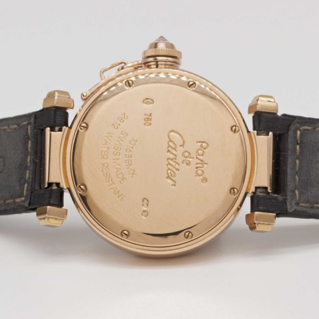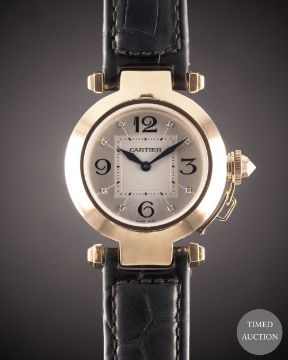 Case: Diameter approx. 32mm, signed Pasha de Cartier, numbered, original diamond-set crown guard.
