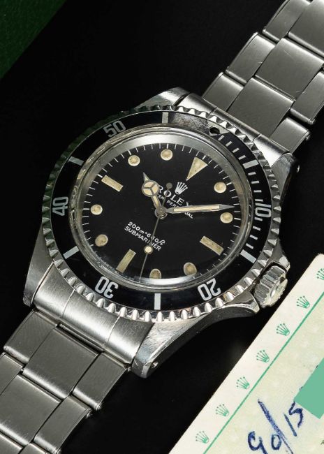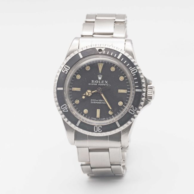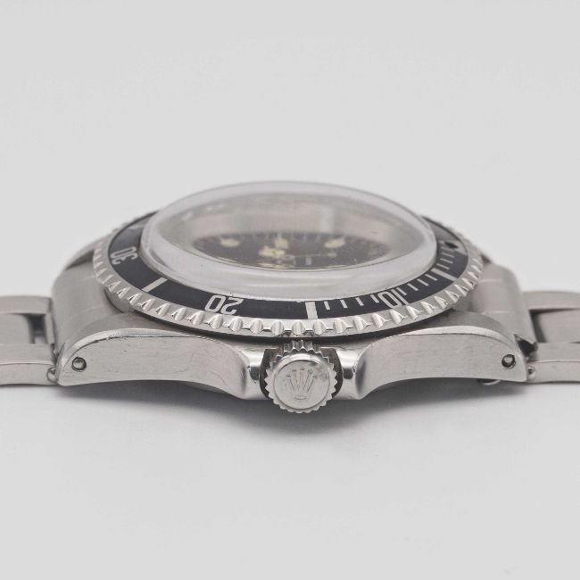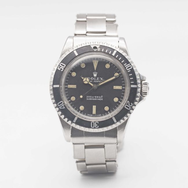 A RARE GENTLEMAN'S STAINLESS STEEL ROLEX OYSTER PERPETUAL SUBMARINER BRACELET WATCHCIRCA 1967, REF. 5513 "METERS FIRST" MATT DIAL WITH "DOMED" ZINC SULPHIDE LUMINOUS, ACCOMPANIED BY THE ORIGINAL BOX, HANDWRITTEN GUARANTEE (SOLD IN 1969) & ANCHORMovement: 26J, automatic, cal. 1520, signed Rolex Geneva.Case: Diameter approx. 40mm, Oyster case, signed Montres Rolex S.A., dated II.67, numbered, 60 minute rotating bezel, Rolex crown.Bracelet: Original Rolex Oyster riveted bracelet, numbered 7206/80, dated 2.67.CONDITION REPORTDial: Original dial in very good condition, showing some small signs of age.Movement: Running & functioning at present, timekeeping and accuracy cannot be guaranteed.Case: In excellent condition, with light scratches due to general use, bezel insert missing pearl.Strap/Bracelet: In good condition, with some wear to the links due to general use.