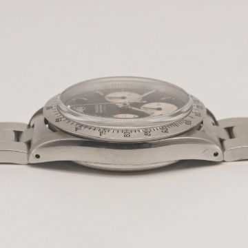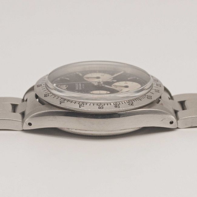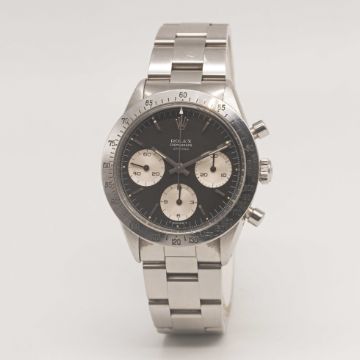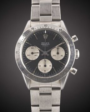 A RARE GENTLEMAN'S STAINLESS STEEL ROLEX COSMOGRAPH "SMALL FONT" DAYTONA BRACELET WATCHCIRCA 1966, REF. 6239 WITH "UPSIDE DOWN" REFERENCE & SERIAL NUMBERS, "REVERSE PANDA" DIALMovement: 17J, manual wind, cal. 72B, signed Rolex Geneve.Case: Diameter approx. 37mm, signed Montres Rolex S.A., serial number between top lugs & reference between bottom lugs, serial no. 1,4xx,xxx, units per hour bezel, Rolex screw-down crown & "pump" pushers.Bracelet: Rolex Oyster bracelet, numbered V1 X1 78350/19/557B.CONDITION REPORTDial: Original dial in very good condition, showing some signs of age.Movement: Running & functioning at present, timekeeping and accuracy cannot be guaranteed.Case: In very good condition, with light scratches due to general use.Strap/Bracelet: In excellent condition, with some light scratches due to general use.