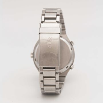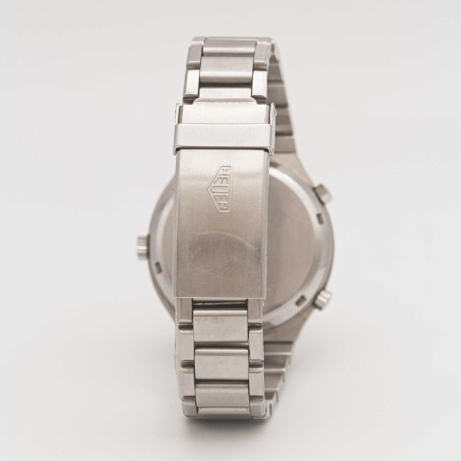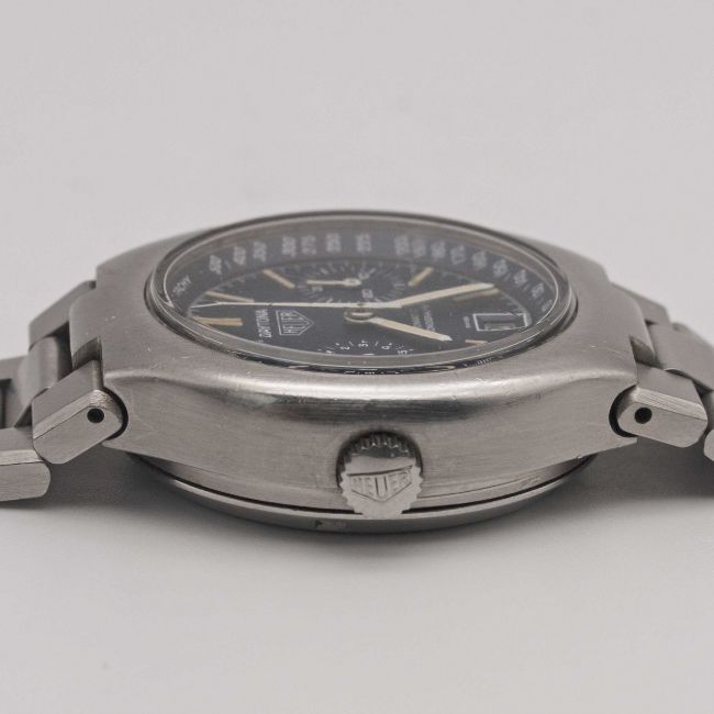 A GENTLEMAN'S STAINLESS STEEL HEUER DAYTONA AUTOMATIC CHRONOGRAPH BRACELET WATCHCIRCA 1977, REF. 110.203.B WITH MIDNIGHT BLUE DIALMovement: 17J, automatic, cal. 12, signed Heuer.Case: Width approx. 39mm, screw back, signed Heuer-Leonidas SA, numbered 35x,xxx, Heuer crown & pushers.Bracelet: Original Heuer bracelet with flip-lock clasp.CONDITION REPORTDial: Original dial in excellent condition.Movement: Running & functioning at present, timekeeping and accuracy cannot be guaranteed.Case: In good condition, with small scratches due to general use.Strap/Bracelet: In good condition, with light scratches & some wear due to general use.