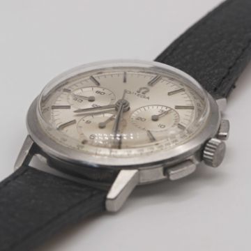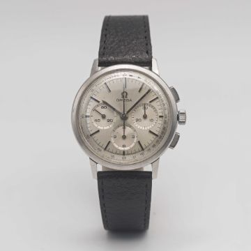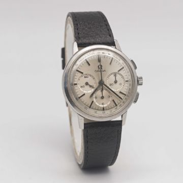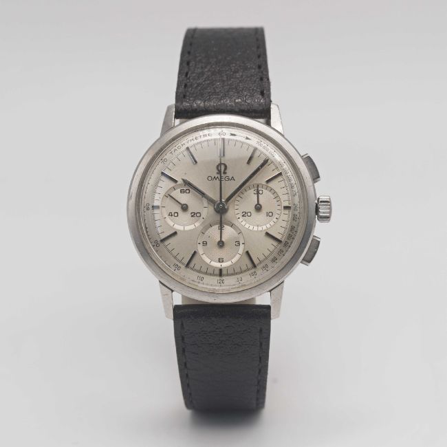 A GENTLEMAN'S STAINLESS STEEL OMEGA CHRONOGRAPH WRIST WATCHCIRCA 1965, REF. 101.010-63 WITH CAL. 321 MOVEMENT & SILVER TACHYMETRE DIALMovement: 17J, manual wind, cal. 321, signed Omega Watch Co, numbered 22,xxx,xxx. Case: Diameter approx. 35mm, snap back, signed Omega Watch Co.Strap: Leather strap with Omega pin buckle.CONDITION REPORTDial: Original dial in very good condition, showing some small signs of age.Movement: Running & functioning at present, timekeeping and accuracy cannot be guaranteed.Case: In fair condition, with small scratches due to general use, a light dent to case back.Strap/Bracelet: In fair condition.