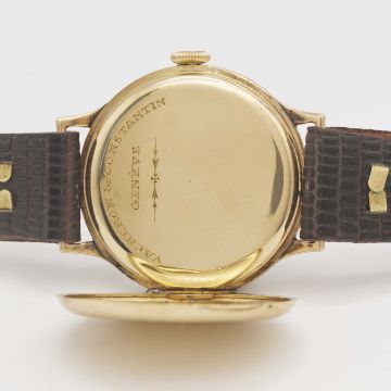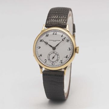 A GENTLEMAN'S 18K SOLID YELLOW GOLD VACHERON & CONSTANTIN GENEVE WRIST WATCHDATED 1930, REF. 2794 ENAMEL DIAL WITH BREGUET NUMERALS & HANDS, ACCOMPANIED BY VC EXTRACT FROM THE ARCHIVESMovement: 15J, manual wind, cal.11, signed Vacheron & Constantin, numberedCase: Diameter approx. 33mm, 18k solid gold hinged case, signed V&C, Vacheron & Constantin Geneve, numbered.Strap: Leather.CONDITION REPORTDial: Original dial in fair condition, hairline cracks between 4 & 5 o'clock.Movement: Running & functioning at present, timekeeping and accuracy cannot be guaranteed.Case: In very good condition, with some light scratches and wear due to general use.Strap/Bracelet: In excellent condition.