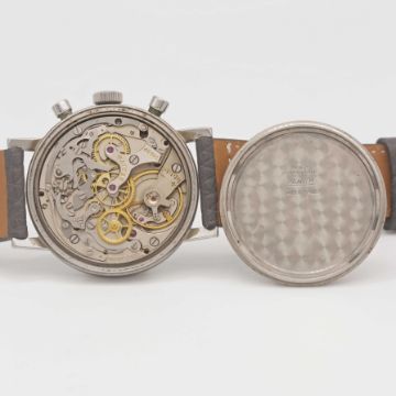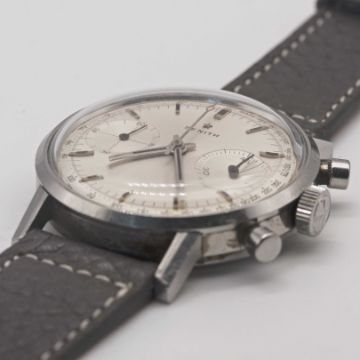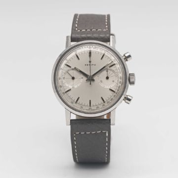 A GENTLEMAN'S STAINLESS STEEL ZENITH CHRONOGRAPH WRIST WATCHCIRCA 1960s, REF. A271 Movement: Manual wind, cal. 146DP, signed Zenith.Case: Diameter approx. 37mm, screw back, signed Zenith with emblem on case back, numbered 38xDxxx, Zenith crown.Strap: Leather.CONDITION REPORTDial: Original dial in very good condition, showing some signs of age.Movement: Running & functioning at present, timekeeping and accuracy cannot be guaranteed.Case: In very good condition, with small scratches due to general use.Strap/Bracelet: In excellent condition.