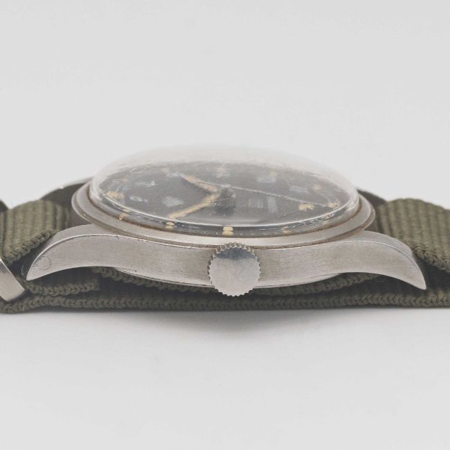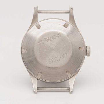 A GENTLEMAN'S STAINLESS STEEL BRITISH MILITARY RAF SMITHS WRIST WATCHDATED 1967, WITH RARE RAF ISSUE MARKINGSMovement: 17J, manual wind, signed Made in England, numbered.Case: Diameter approx. 35mm, fixed bars, screw back, issue markings 6B/9614045 ^ 322/67, dust cover.Strap: NATO.CONDITION REPORTDial: Original dial in excellent condition, showing some small signs of age.Movement: Running & functioning at present, timekeeping and accuracy cannot be guaranteed.Case: In very good condition, with some small scratches due to use.Strap/Bracelet: In excellent condition.