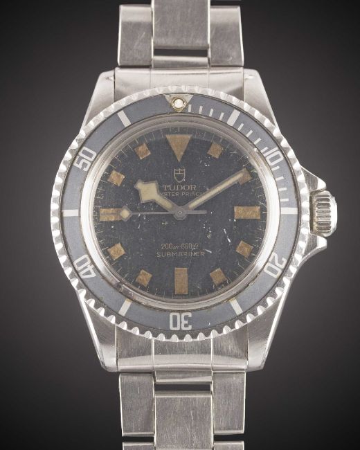 A GENTLEMAN'S STAINLESS STEEL ROLEX TUDOR OYSTER PRINCE "SNOWFLAKE" SUBMARINER BRACELET WATCHCIRCA 1969, REF. 7016/0 WITH "SWISS ONLY" DIALMovement: 25J, automatic, cal. 2483, signed Tudor Auto-Prince.Case: Diameter approx. 40mm, Oyster case, signed Montres Tudor S.A., dated IV.68, numbered 74x,xxx, "fat font" 60 minute rotating faded bezel, Rolex crown.Bracelet: Rolex Oyster bracelet, numbered 7836/358, dated 4.72.CONDITION REPORTDial: Original dial in fair condition, showing signs of age & bubbling to the surface.Movement: Running & functioning at present, timekeeping and accuracy cannot be guaranteed.Case: In excellent condition, with some small scratches due to general use.Strap/Bracelet: In fair condition, with light scratches & some wear to the links due to general use.