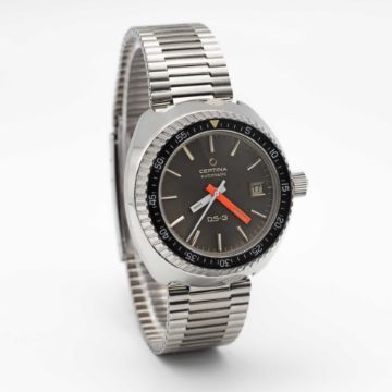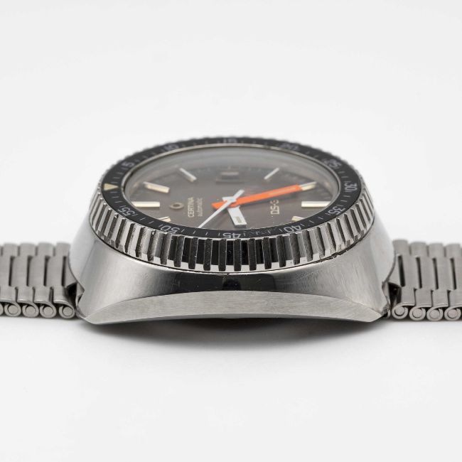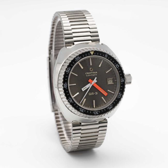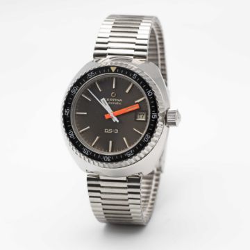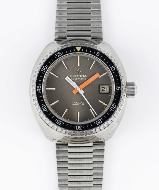 A GENTLEMAN'S STAINLESS STEEL CERTINA DS 3 AUTOMATIC DIVERS BRACELET WATCHCIRCA 1970s, REF. 750 1402 41Movement: 25J, automatic, hacking seconds, quick-set date, cal. 919-1, signed Certina.Case: Diameter approx. 40mm, screw back, signed Certina Watch Corp, turtle emblem engraved on case back, numbered, spring loaded 60 minute rotating bezel, Certina screw-down crown.Bracelet: Certina stainless steel bracelet, numbered 304 18/10 41498.CONDITION REPORTDial: Original dial in excellent condition.Movement: Running & functioning at present, timekeeping and accuracy cannot be guaranteed.Case: In excellent condition, with some light scratches due to general use, original protective wax seal on case back. Bracelet: In excellent condition.