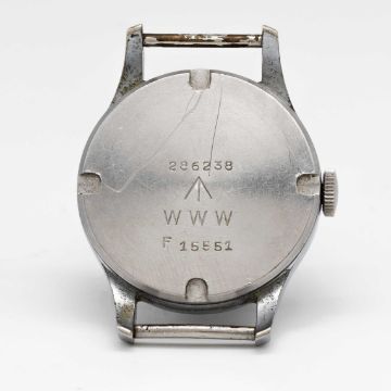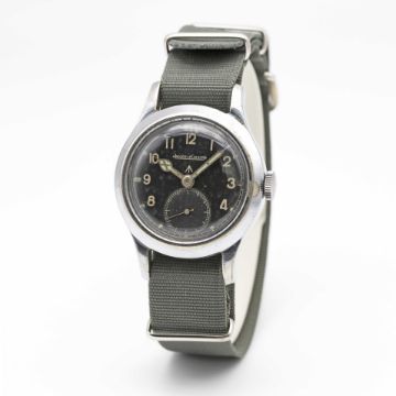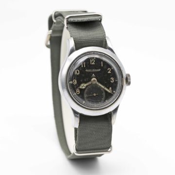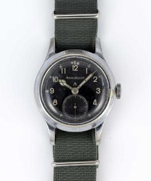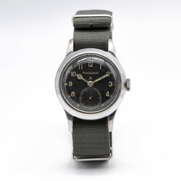 A GENTLEMAN'S BRITISH MILITARY JAEGER LECOULTRE W.W.W. WRIST WATCHCIRCA 1945, PART OF THE "DIRTY DOZEN"Movement: Manual wind, cal. 479, signed Jaeger-LeCoultre, numbered.Case: Diameter approx. 35mm, chrome plated top, fixed bars, steel screw back, signed LeCoultre Co, issue markings ^ W.W.W. 286238 F15551.Strap: NATO.CONDITION REPORTDial: Original dial in good condition, showing signs of age. Movement: Running & functioning at present, timekeeping and accuracy cannot be guaranteed.Case: In good condition, with some scratches and wear due to use.Strap: In excellent condition.