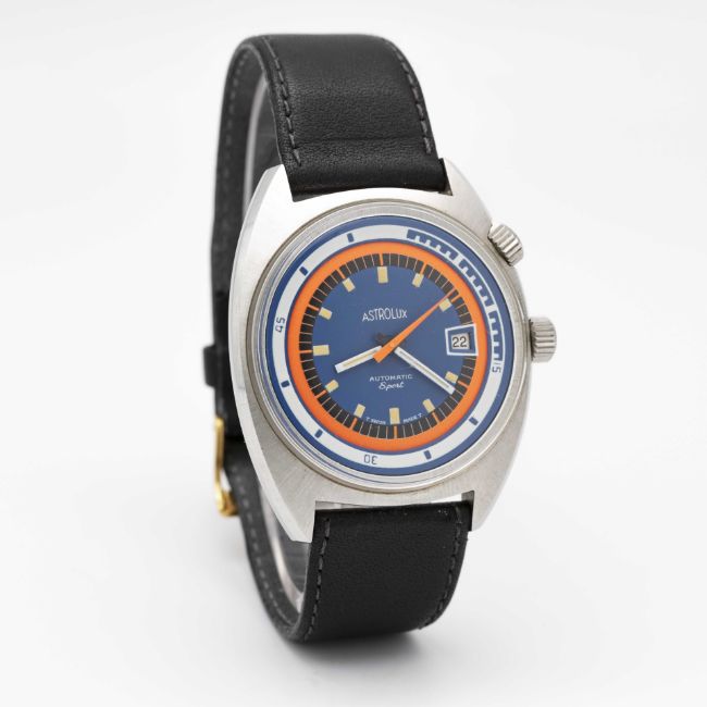 A RARE GENTLEMAN'S STAINLESS STEEL GLYCINE ASTROLUX AIRMAN SST SPORT AUTOMATIC WRIST WATCHCIRCA 1970sMovement: Automatic.Case: Width approx. 42mm, compressor snap back, signed Glycine Airman SST with Boeing embossed on case back, patent numbers 314.050 / 323.1219, numbered 98x,xxx, 60 minute rotating inner bezel, anti-slip crowns.Strap: Leather.CONDITION REPORTDial: Original dial in excellent condition.Movement: Running & functioning at present, timekeeping and accuracy cannot be guaranteed.Case: In excellent condition, with some light scratches due to occasional use.Strap/Bracelet: In very good condition.