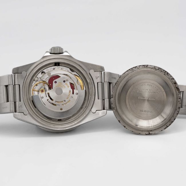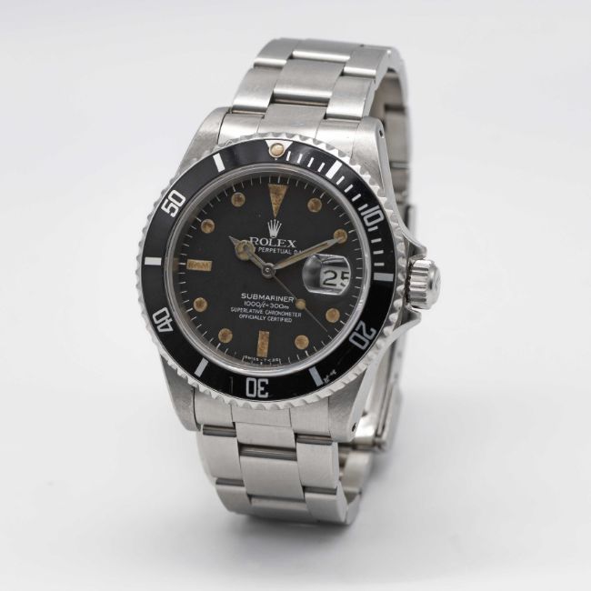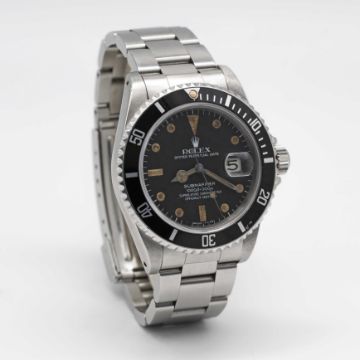 A GENTLEMAN'S STAINLESS STEEL ROLEX OYSTER PERPETUAL DATE SUBMARINER BRACELET WATCHCIRCA 1984, REF. 16800 "TRANSITIONAL" MODEL WITH MATT DIAL Movement: 27J, automatic chronometer, quick-set date, cal. 3035, signed Rolex S.A., numbered.Case: Diameter approx. 40mm, Oyster case, signed Montres Rolex S.A., serial no. 8,4xx,xxx, 60 minute rotating bezel, sapphire crystal, Rolex triplock crown.Bracelet: Rolex Oyster Submariner bracelet with flip-lock clasp & extension, numbered K1/93150/501B. CONDITION REPORTDial: Original dial in very good condition, luminous showing signs of age. Movement: Running & functioning at present, timekeeping and accuracy cannot be guaranteed. Case: In very good condition, with scratches due to general use. Strap/Bracelet: In very good condition.