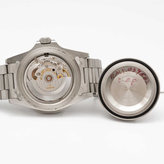 A GENTLEMAN'S STAINLESS STEEL ROLEX TUDOR PRINCE OYSTERDATE "LOLLIPOP" SUBMARINER BRACELET WATCHCIRCA 1984, REF. 76100 Movement: 25J, automatic, quick-set date, cal. 2824-2, signed Tudor Auto-Prince.Case: Diameter approx. 40mm, Oyster case, signed Montres Tudor S.A., serial no 70,xxx, 60 minute rotating bezel, Rolex triplock crown.Bracelet: Tudor Oyster Submariner bracelet, numbered K12/9315/380B.CONDITION REPORTDial: Original dial in excellent condition.Movement: Running & functioning at present, timekeeping and accuracy cannot be guaranteed.Case: In excellent condition, with some light scratches due to general use.Bracelet: In very good condition, with some scratches due to general use.
