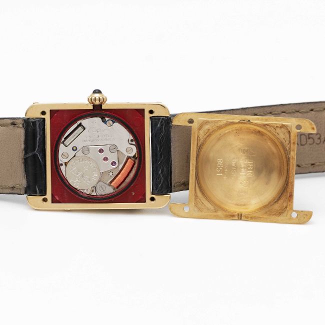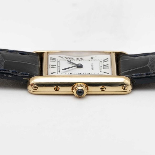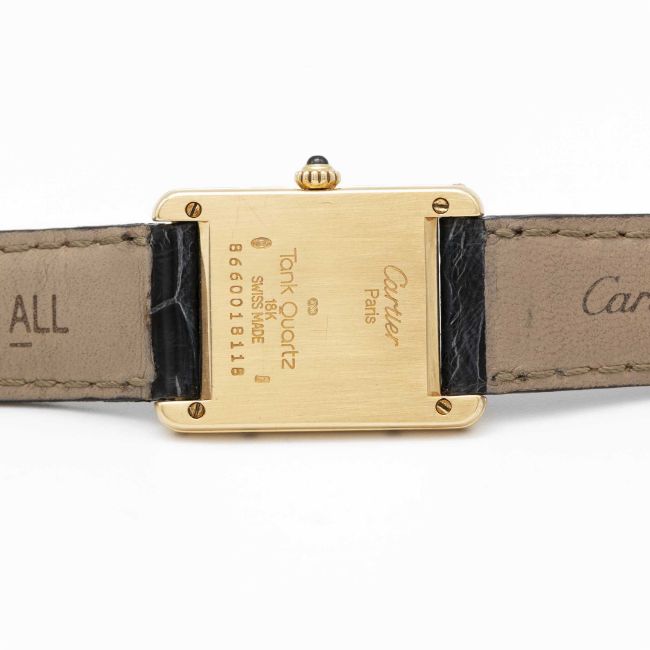 A LADIES 18K SOLID GOLD CARTIER PARIS TANK WRIST WATCHCIRCA 1990s, REF. 8660Movement: Quartz, signed Cartier.Case: Approx. 27.5mm by 20.5mm, signed Cartier Paris, numbered, 18k hallmarks, sapphire crown.Strap: Cartier leather strap with gold plated Cartier pin buckle.CONDITION REPORTDial: Refinished dial in good condition.Movement: Running & functioning at present, timekeeping and accuracy cannot be guaranteed.Case: In excellent condition, with some light scratches due to general use.Strap/Bracelet: In very good condition, with some light wear due to general use.